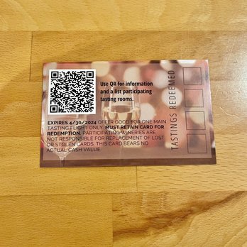 Did leave with 3 bottles of wine as what we tried was delicious. However, i was poured a welcome taste and then asked for my ID (I'm 63). I left it in car and was told I wouldn't be served without it. We proceed to watch new people come in not required to show ID (including a group that looked to be similar age as the 26 year old with us that couldn't be served due to not having ID).
