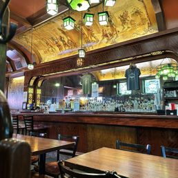 They stay very busy! But service was good and food came relatively quickly. The restaurant is beautiful. It's all old wood and stained glass windows.