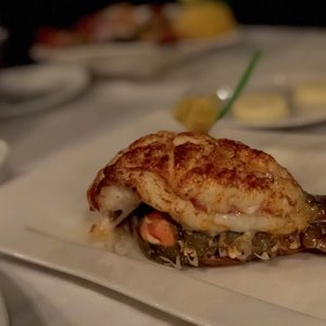 The lobster is broiled and because it's popular it comes out quick. The tails are pre-cut to make it easy for everyone. Drawn butter is available.