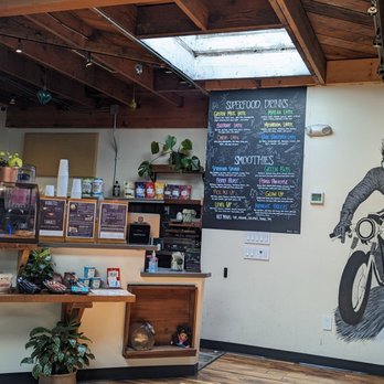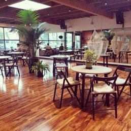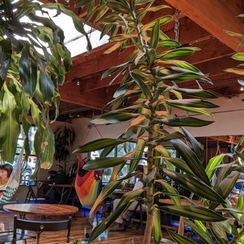 This cafe has a different kind of vibe than the usual coffee shops. While there is a long list of options for coffee there are also smoothies, tea, and food. Good choices for vegetarian/vegan options, but you can also get bacon in your burritos or on your waffle. So many toppings available for the waffle which is made with banana which makes it even tastier. The avocado toast is huge. All of this can be enjoyed in a space that feels a little bit like a rain forest with plants and hammock chairs! Dog and kid friendly.