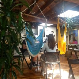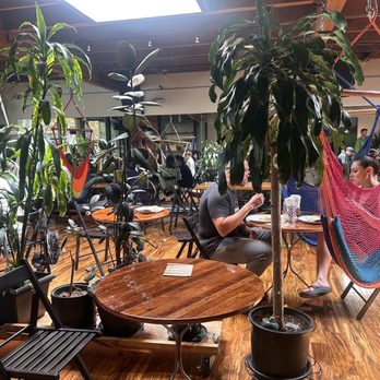 The food here was excellent and the service was great! We got the pesto toast and a sticky bun, both which were amazing! I was disappointed that the online menu had breakfast burritos which were no longer part of the menu. They also did not have drip coffee so we had to order americanos. I loved the hammock chairs and the vibe was great! Overall it was good and I'd definitely go again. I'd like to try one of their smoothies next time!