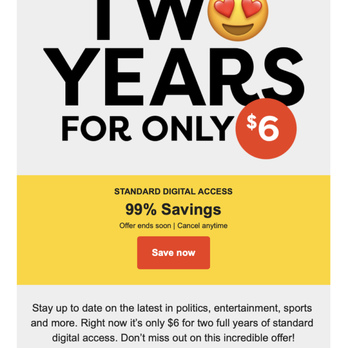 But they told me I only have a one-year subscription. I explained the offer I used. They said that wasn't an offer. So, I had to EMAIL THEIR OFFER EMAIL BACK TO THEM. The WORST.