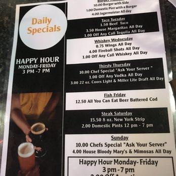 Always great service! The food is terrific, the drink are reasonably priced. The Saturday night bands are eclectic and very dancable! We love coming here!!