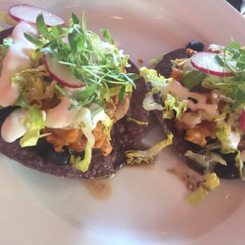 Helpful 3Thanks 0Love this 3Oh no 0May 21, 2015Previous reviewVery happy to find a Mexican place that caters to both the carnivorous tastes of my boyfriend and my own vegetarian low-carb sensibilities. Such options - both soy chorizo and crispy tofu as filling possibilities! The tacos were great and I want to try the sopes next time. The coconut flan was heavenly - rich and flavorful and sophisticated in its flavorings, and gone way too fast. Only quibble was that the place is a bit pricy, but a Groupon helped to ameliorate the sting. And - so close to work! I think I will be back :)