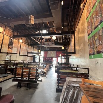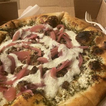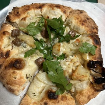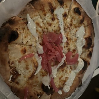 Service was awesome, dining area very relaxed & good music. Kids got the red pie & added basil A+ I got the red pie & added kalamata olives & the smoked mushroooms A++ & the Hubs got what our waitress told us would be the last Yalie. We hope not because it was just soooooo good! Solid cocktail, beer & wine list. Have fun finding the bathroom, see if u can locate it without asking first.