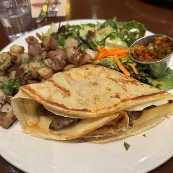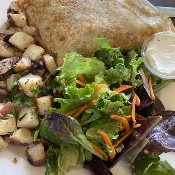My favorite staples are their gluten-free crepes with house potatoes, bacon, and fresh fruit. What I absolutely love is that I am not a huge fan of melon so they will bring me a bowl of fruit without melon on request!!!! Their bacon is a medium thickness cooked to order. Their house potatoes are lightly crisp and well-flavored.