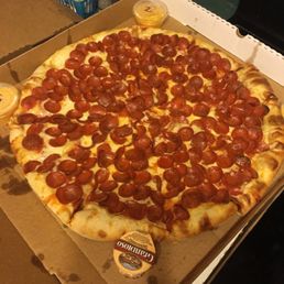 This is a small pizza place and the only one that delivers to my house out in the country. It doesn't open until like 4 pm so that is kind of inconvenient. It is their business though so I did not factor that into the rating, it is just a heads up. The pizza is not my style and it is pretty expensive. It is pretty floppy. The pepperonis were a little spicy which I loved. It is good pizza but for the price I do not think I will get pizza from here that often. I love thin crust pizza, non flop crust, garlic crust, and tons of pizza sauce so Dawg House is not my favorite. I still respect it though even though it is not my style. It is still great pizza and my kids loved it.
