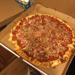 This was a pick up order and I sent my daughter to pick it up so I can not say anything about the service or the atmosphere. But I can talk about the pizza. It was over flowing with toppings and they all meshed together a long with the crust and sauce to make a outstanding pizza that was popping with flavors. The pepperoni bread sticks were also very tasty.