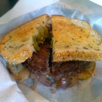 Burger - meat was tasty - tasted fresh. I ordered mine on texas toast, expected a garlicy cheesy bun but no: its basically toasted, thick DRY white bread with no real flavor (skippin it next time!)