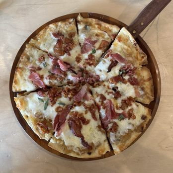 Had a great tasting and delicious pizza and meat and cheese boards. The wife of the couple who owns the place visited with us and the staff was super friendly and knowledgeable!!