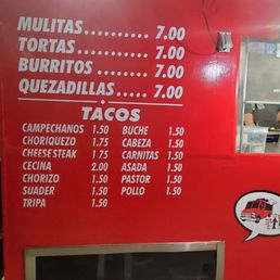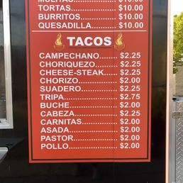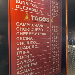 Lots of meat options available, tacos range from $1.75 to 2.5