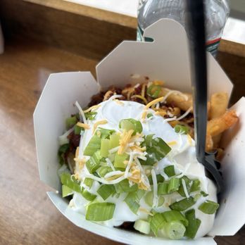 Fries tasted like dollar store fries that were fried, left out to cool, then refried. Bland, and very expensive. Not much was put on them in terms of toppings. If you include a tip, almost $16!