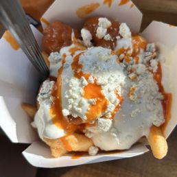 We found this place in Downtown, Providence Rhode Island. This spot is an about a 5 minute walk from Johnson and Wales. We order three different types to try and shared them all. The best was the Buffalo Chicken Friskie Fries. Boneless chicken bites, lots of blue cheese dressing and crumbles and of course hot sauce. The second was the Steak and Cheese, they were very tasty. My wife really enjoyed the Loaded Potato Fries, she put some the malt vinegar on them and it was really good.
