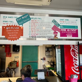 This is one of those times I wish 3.5 stars was an option. The place is small, but very cool and specializing in French fries and doing it well is a great idea. They offer multiple toppings, seasonings, spices etc and they even have desert fries!