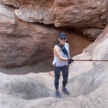 Two of our group came later and missed the hole, not sure how that was even possible it's obvious. Back up it took is hours solely because one of the group was just point blank a pain in the ass: only talk and laugh and complain and acting like she was gonna die climbing back up. If you haven't hiked in decades then don't burden others and don't come on this hike. We also saw a family with 2 toddlers and a new born on flip flops, this is so irresponsible especially none were wearing helmets. Water shoes are recommended. I walked in my sneakers. But for getting to the pools I recommend shoes with grip as it's often slippery and my sneakers didn't do well with that. Also don't bring your dog if you can't carry him on your back or handle the narrow rappelling, we also had to help idiots of that kind. Bring enough water and snack. Lovely way to spend the day especially fall when there's excellent weather and you can enjoy hot pools. Small parking lot and no bathrooms so you rely on the wild:)Helpful 15Thanks 0Love this 10Oh no 0 - Drewn L.Mesa, AZ024110Feb 19, 2022