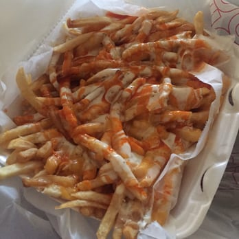 Its near me and I was tired of burgers. Called in the order based on Yelp reviews and guess what??? Yelpers always know!!! The flaming chicken gyro was "on fire" and delicious and filling and the large town fries huge!!!! Creamy buffalo goodness. *Tip large fries are for about 4 people and eat with a fork. All the food is messy. I just dont like the place to eat in. It was hot and rather be home. I highly recommend it. $14 total but it was way too much food for 1 person.