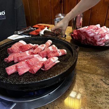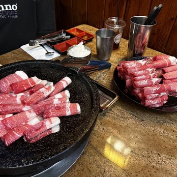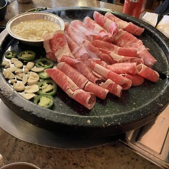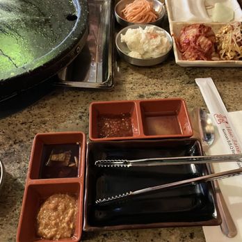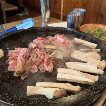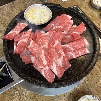 Service: This is an AYCE so we were super surprised when the server/chef came and just started grilling our meats. From our experience they only grill your meats when you go to the non-AYCE joints. Like another customer said she didn't explain or give us the heads up that she'd be "assisting" with the cooking so we were caught off guard. We didn't even think to let her know that we'd prefer to cook ourselves (per the recommendation from another Yelper). One person in our party is particular about her meats having to be extra cooked and nothing raw touching other stuff so it was a bit disconcerting every time they'd come by and just move everything we had around. The server/chef seemed very abrupt when we'd ask for items. Ex: I was listing the items we'd like from the "Salad, Rice, Etc" section when she just interrupted and said she'll bring one of every thing. But we didn't want everything so the extra items (like the pancake) was moved from the grill to the throw away plate. To us it was a waste of food but that's how she wanted it Helpful 0Thanks 0Love this 0Oh no 0Business owner information