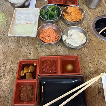 They definitely have quality meats here! I highly recommend the Beef Brisket here, it is THE BEST I have tasted in my life thus far! I would come back here over and over again just for it alone! Not only is their meat good their Banchan are BOMB DOT COM too!! I always do a preliminary judgement of a KBBQ spot based on fheir Banchan selection. And let me tell you once I saw the choices I knew I was in good hands. The potato salad here is AMAZING by the way, they include apple in it so it has a nice citrus flavor to it, to help get rid of some of the meat sweats if you know what I mean.