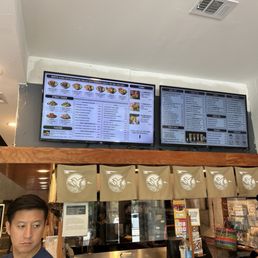 Easy ample free parking lot. Service is professional, friendly and quick. Café is sparkling clean, organized and tables-a-plenty! Easy to read menu with colorful pictures promoting à la cart or combo dishes. Convenient large screen kiosks for easy descriptions and ordering off the really extensive menu of food and more smoothies than you can count! Cozy exclusive outdoor tables makes for lovely option on nice days. Excellent addition to outskirts of core Chinatown.