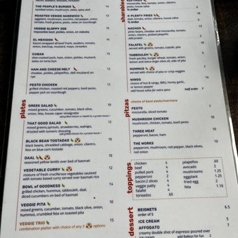 I ordered a Vanilla Chai Tea Latte that tasted like a warm gingerbread cookie and a couple small plates to try. The tabbouleh was fresh and the pitas were warm and fluffy. The 420 Fries were ridiculously good but if you can't handle your spice you may want to try something else. There is a bench along the back wall with plenty of wall outlets if you're looking to get some work done as well.