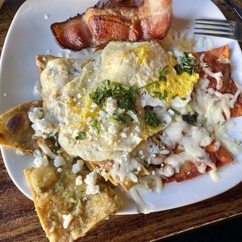 Chilaquiles: Got them half green and half red. Both sauces have really bold flavors but my favorite was the green. Had a nice tang and savor note and mild heat to it. Topped with mozzarella cheese. Thats different to me but it added a nice mild saltiness to it.