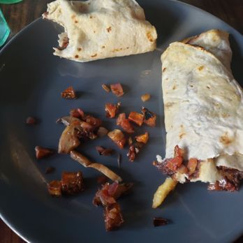 My sister ordered chilaquiles... Which side note, I think they should veganize, maybe top with some yummy veggies... she said Chilaquiles were not saucy enough, but her eggs were perfectly cooked. She also ordered fries and pancakes... She loved the pancakes. I ordered the veggie burrito, and it was pretty good. That burrito and the pancakes were the redeeming factors, why I am giving this place 4 stars rather than a 3.