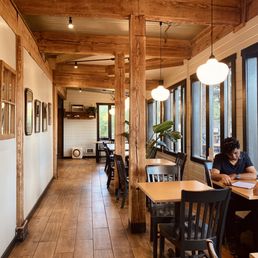 One of the few places in town that's open midweek, so we ended up coming in for dinner and again the next morning for coffee. At first when my husband found them online and mentioned vegan/vegetarian-friendly comfort food, I envisioned heavy mac and cheese and fried foods. We were both very pleasantly surprised to find fresh grain bowls and the like instead. I had the southwest bowl (brown rice, black beans, steamed kale, pickled cabbage, pickled red onion, pickled jalapenos) which had a hefty kick to it and was exactly what I was hoping to find. Except for the kale which required a lot of destemming before eating. That's a personal pet peeve of mine. Note to restaurants: NO ONE LIKES THE STEMS. Thank you. My husband got the mushroom noodles (udon, shiitakes, bok choi, pickled jalapenos, and I think a sesame sauce). It was tasty but pretty basic. We've replicated it a couple times at home since then, so it was good inspiration. We each ordered a glass of wine of which they have a few available. Most wines on their menu are by the bottle, so I didn't get my first pick, but the rose I had was perfect for a warm evening. Can't say much about service because there isn't really any. Order at the counter and they'll drop your food off at your table for you, then you bus your dishes afterwards. Large patio was lovely, but the door constantly slamming as staff enter and exit was really annoying and jarring. None of these things would prevent my returning for good, clean food!