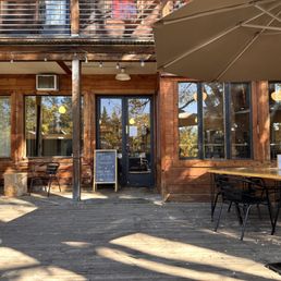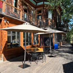 They have indoor and outdoor patio seating. Both are nice and offer lovely views of the mountains around. There is a set of stairs required to get into the venue.