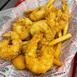 The fried shrimp were fresh, hot and very tasty. It came with fries, slaw and hush puppies. Everything was really good. Service was fast and friendly. Highly recommend!