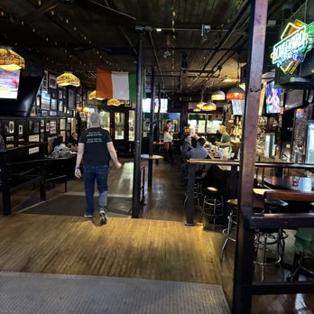 The wood-toned interior of this Irish bar was spacious, with a long bar, friendly and helpful service, a rooftop bar and patio, a secondary bar near the deli and a Guy's Deli counter.