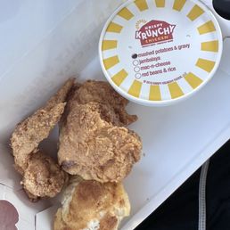 I ordered a 3 piece chicken and biscuits, two pieces of the chicken were overcooked, but the thigh was was pretty delicious. I don't think I'd go back again. The prices OK I'd rather pay a little bit more and have juicy fried chicken rather than dry and overcooked the biscuit however was delicious.