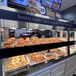 A chicken place inside a gas station! They were sold out of fried chicken all they had were the chicken tenders. Surprised by how really good the tenders were. A little spicy but very good. Definitely going back to try the fried chicken. The line was 4 deep around 330 on a Thursday afternoon. Give it a shot!