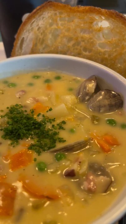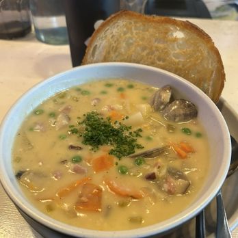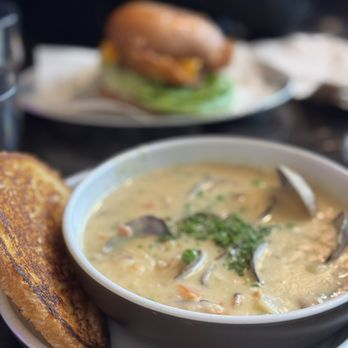 Clam chowder - fresh clams inside and they were large! Hearty and got me full