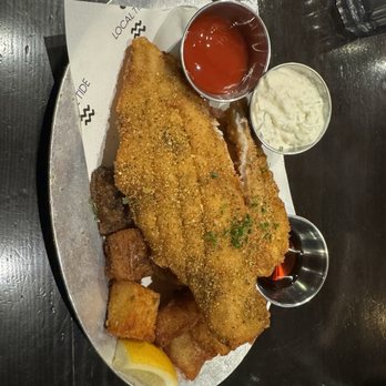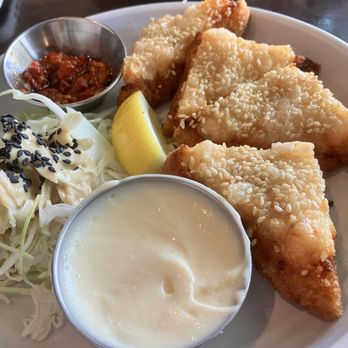 Fish sandwich - fish is super crispy but wish it came with a side of tartar sauce or chips or something else