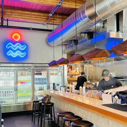 Absolutely love love love Local Tide! I visited because I searched best clam chowder in Seattle. Also, my husband is a huge smash burger fan which they have so it was a win win. It's a very busy place when we came there was a line out the door. I noticed it moved pretty quickly. We also didn't have any issues getting a seat. When you order they help you find a table. We chose to sit at the bar so we found Eagle eye the chef as he prepared our delicious food. The restaurant and seating area is clean. The decor is bright and comfortable with a lot of cool art. I really liked the vibe and how friendly all the staff were.