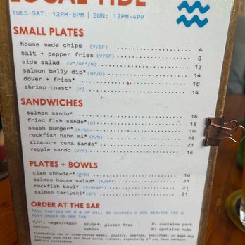 Local Tide is a NW seafood eatery. The Pacific Northwest is our home and we love it. We feel fortunate to have access to incredible ingredients from land and sea and want to support all the like-minded small businesses and communities that make this possible. We specialize in seafood sandwiches. The salmon sandwich, fried fish sandwich, crab roll, vegan sandwich, cheese burger and shrimp toast are all legendary. We source all of our products locally and sustainably. When it comes to food, we like to keep it simple. We prepare each dish with intention, allowing the ingredients of the NW to speak for themselves.