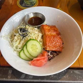 I ordered the teriyaki salmon bowl. It was very good with a good mix of flavors. We ate as Aslan, the only critique is that it took quite a while to arrive.