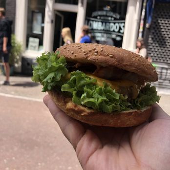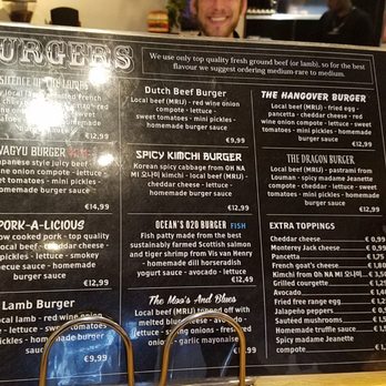 A well known burger joint in Amsterdam, Netherlands. No pun intended with joint. Haha!! The burger was tremendous, they have a reputation if being the best burger place in Amsterdam, i can believe them. I had the hangover burger. Absolutely delicious!!!! Seeded bun toasted, burger juicy and delicious.In between, a fried egg, pancetta, cheddar cheese, red wine onion compote, lettuce, and a homemade burger sauce, kind of like a Chipotle sauce. Everything worked, absolutely delicious!!! This place was worth it!!!