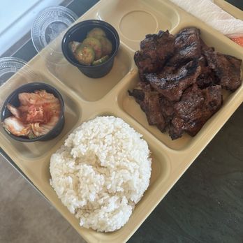 I also tried the galbi plate, which was just okay. The meat was a bit chewy for my taste. It comes with kimchi, cucumber, and rice on the side. The kimchi was fine, but the cucumbers were too bland for my liking.