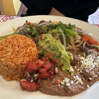 8/10 Chicken Fajitas Quesadillas Plate Lunch $18(?) - good serving size, quesadilla was cold and cheese had hardened up but otherwise would've been really good fresh. Fajitas and chicken were yummy and well seasoned. Guac was mediocre but red sauce was good. Rice and beans were standard.
