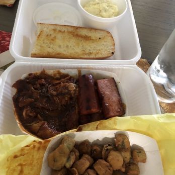 Great bbq! Reminded me of my grandfather's bbq back in Ft. Worth, TX. Had the ribs and brisket...smoked how meat is supposed to be smoked. The potato salad and fried okra were out of sight!