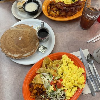 Travelers please read! Make this place a stop if traveling in the area, this place was seriously a god send after all the disappointment trying to find a good restaurant. First off staff was very nice and helpful on recommendations, food was so good I had a breakfast burrito w/ adovada and smothered with red sauce and cheese, my wife ordered the chilaquiles w/red sauce both were delicious possibly the best food we had in all of New Mexico pancakes were perfect! Do yourself a favor and stop in