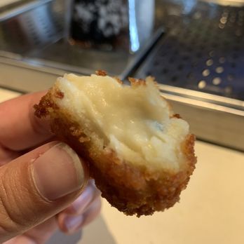 I also ordered the homemade tater tots because I absolutely cannot pass up tater tots I've never had before. And these? These were disappointing. I got really excited at first because they look amazing. And when I bit in I thought it was cheese. But it was actually this sort of mashed potato... blend. Super creamy. Couldn't really taste the bacon in it. I love the texture of tater tots because they're tender but crunchy, so I walked away from these in disappointment. They tasted fine, but they're really more like deep fried mashed potato balls, which, if pitched like that, would have been fine. But I got all hyped for tater tots.