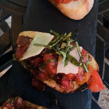 For two of us, we had 5 plates, bruschetta, Caesar salad, crab cakes, potatoes, and beef skewers. They all were excellent! The potatoes were popular and I saw them being delivered to several tables. I loved the crab cakes, beef skewers, and potatoes. I probably would have skipped the Caesar salad and would have gotten the prosciutto bruschetta instead of the regular bruschetta. Everything was great tasting, but those were my favs.