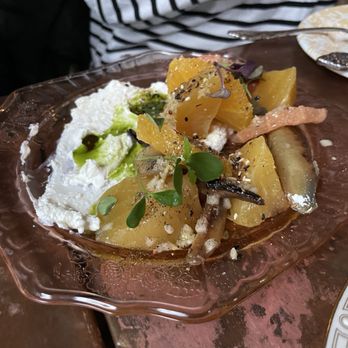 The setting was so cute and eclectic. It's like you are in an antiques fair and the little brook in the middle is just makes you feel like you found this little hidden gem. The drinks were great but the food was outstanding!! All small plates so you really got to try a variety of things. We wanted to go back during our stay but we just didn't get a chance. I would highly recommend. Every dish we had was outstanding but our favorites were the kale brussels salad, the prosciutto toast and the scallops. They were really crave worthy good!!!