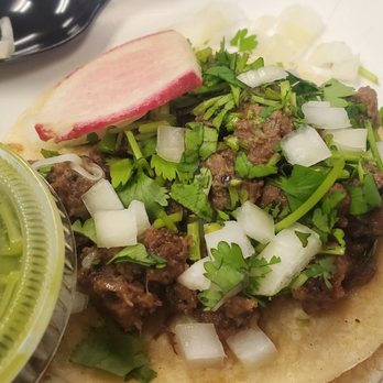 Filling tacos. A bit larger than I originally expected, but makes sense given the price point. Menu confused me a bit as the meat prices seem misleading. While it says (add 50c) next to shredded beef and (add $1.00) next to tripa, it's actually saying all the meats cost extra. So one taco is $3.39 for the tortilla, cilantro, onion, and radish before you're charged for meat. I didn't like that part as the taco description mentions your choice of meat.