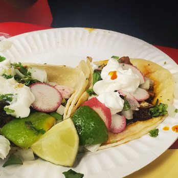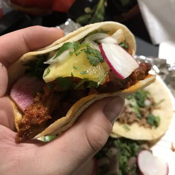 I was extremely disappointed with this place! After doing a quick search for tacos at around 10pm. I found this place. Visiting from California, I was excited that I had found tacos after a night of drinks. Yet, to my surprised each taco was about $4 (okay-kinda pricey but, I was hungry) than, I was charged $.80 cents for ASADA! (So basically $4 was for tortilla and cilantro?) We paid $29.36 for 6 tacos and one medium horchata! What a ripped off