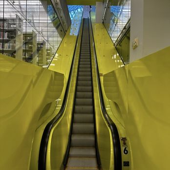The architecture of this massive 10-story library is so unique! The design of the windows gives me airport vibes. Riding up the escalator was really trippy and a fun experience.