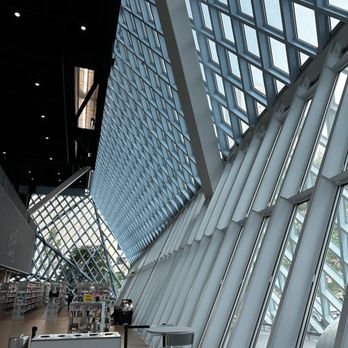 Excellent public library with glass walls and roofs that let light shine through. You can easily spend a day here and immerse yourself in the warm coffee and good reading. They have $1 books for sale in the corner and great deals to grab!