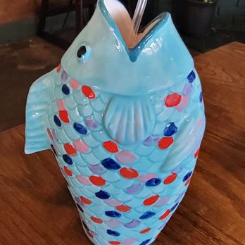 She had the kiss the fish craft cocktail. Served in the fish glass but the drink didn't hit with us.